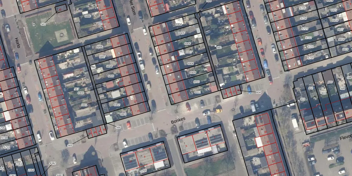 Het perceel waarop het adres ligt is ZWD03-A-6910. De afkorting 'ZWD03' staat voor kadastrale gemeente Zeewolde. De gemiddelde perceelgrootte in Zeewolde is 1,9 ha. Dit perceel is kleiner: de perceeloppervlakte bedraagt 159 m². Het kleinste perceel in de kadastrale gemeente is 0 m² groot. De grootste perceeloppervlakte is 6,16 km². Dit is het enige adres dat aanwezig is op het perceel. De huidige grenzen van het perceel zijn digitaal in de Basisregistratie Kadaster (BRK) geregistreerd op 26-03-2024.