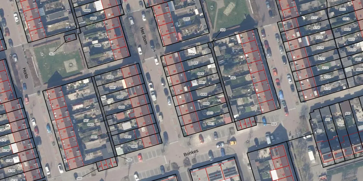 Gebruik de zoekbalk of klik op een perceel voor informatie over de adressen binnen dit perceel.