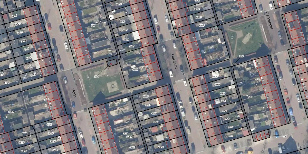 Het perceel waarop Het Som 41 staat heeft een oppervlakte van 557 m². Dit is een groot perceel. De perceeloppervlakte wordt geregistreerd door het Kadaster. Gedetailleerde informatie over de maten van dit perceel kunt u vinden in het rapport Kadastrale kaart met maatvoering van Het Som 41.