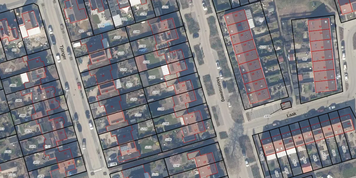 Gebruik de zoekbalk of klik op een perceel voor informatie over de adressen binnen dit perceel.