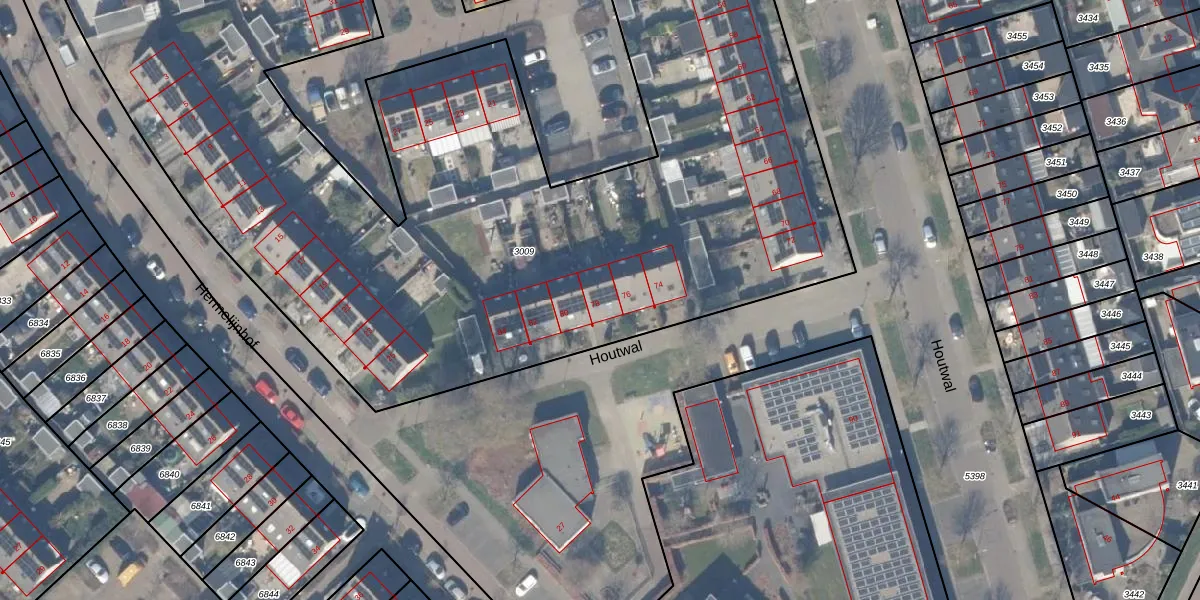 Het perceel waarop Houtwal 78 staat heeft een oppervlakte van 8499 m². Dit is een zeer groot perceel. De perceeloppervlakte wordt geregistreerd door het Kadaster. Gedetailleerde informatie over de maten van dit perceel kunt u vinden in het rapport Kadastrale kaart met maatvoering van Houtwal 78.