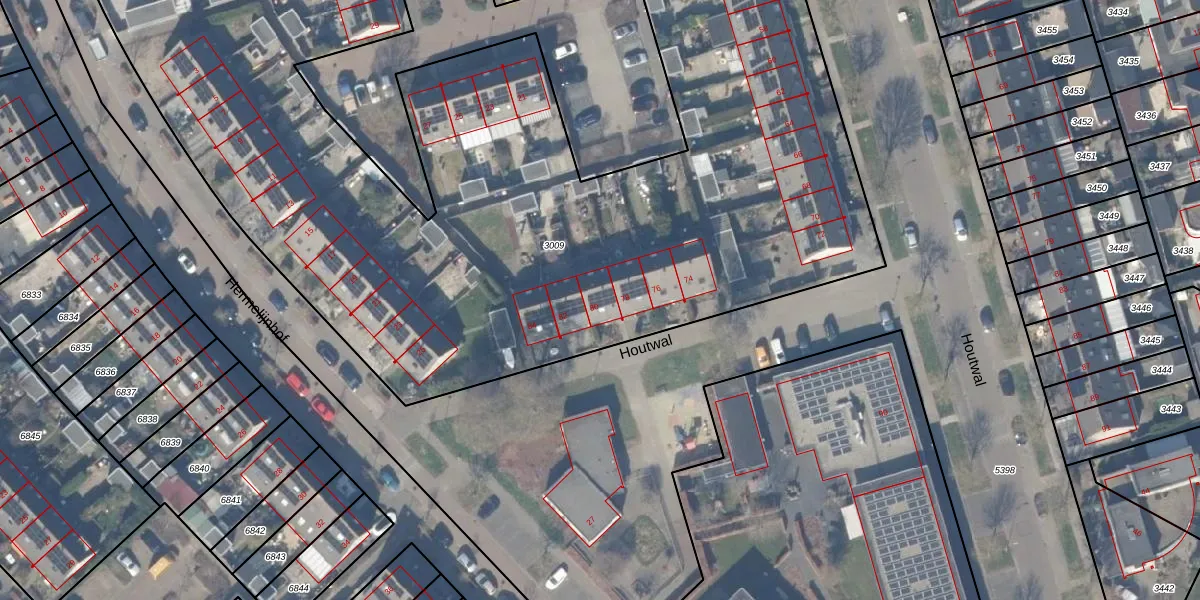 Het perceel waarop Houtwal 80 staat heeft een oppervlakte van 8499 m². Dit is een zeer groot perceel. De perceeloppervlakte wordt geregistreerd door het Kadaster. Gedetailleerde informatie over de maten van dit perceel kunt u vinden in het rapport Kadastrale kaart met maatvoering van Houtwal 80.