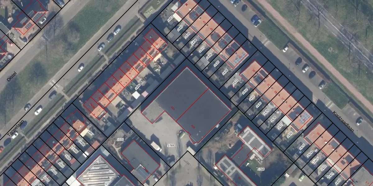 Het perceel waarop Jupiterweg 41-A staat heeft een oppervlakte van 1843 m². Dit is een zeer groot perceel. De perceeloppervlakte wordt geregistreerd door het Kadaster. Gedetailleerde informatie over de maten van dit perceel kunt u vinden in het rapport Kadastrale kaart met maatvoering van Jupiterweg 41-A.