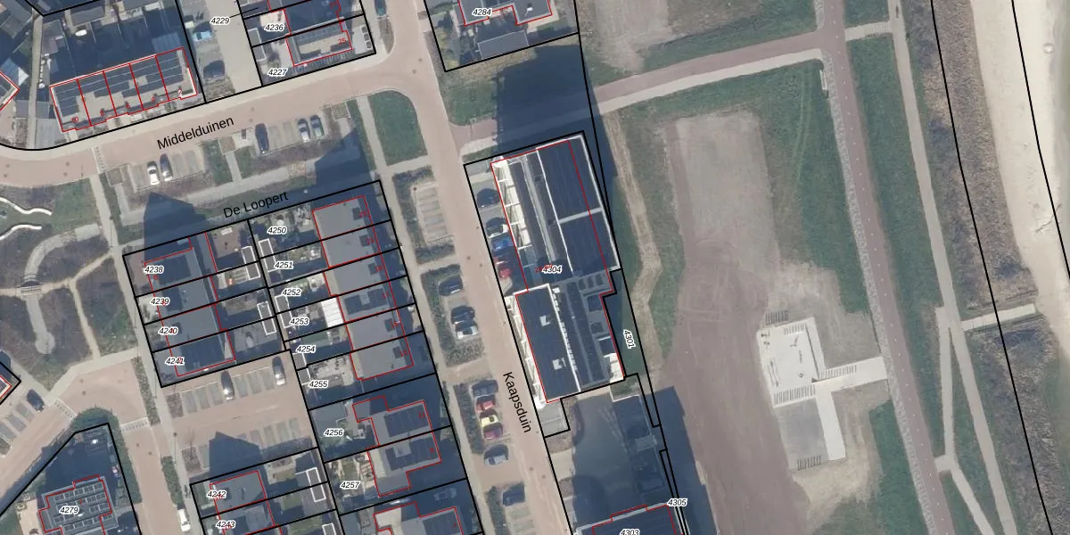 Het perceel waarop Kaapsduin 30 staat heeft een oppervlakte van 1023 m². Dit is een zeer groot perceel. De perceeloppervlakte wordt geregistreerd door het Kadaster. Gedetailleerde informatie over de maten van dit perceel kunt u vinden in het rapport Kadastrale kaart met maatvoering van Kaapsduin 30.