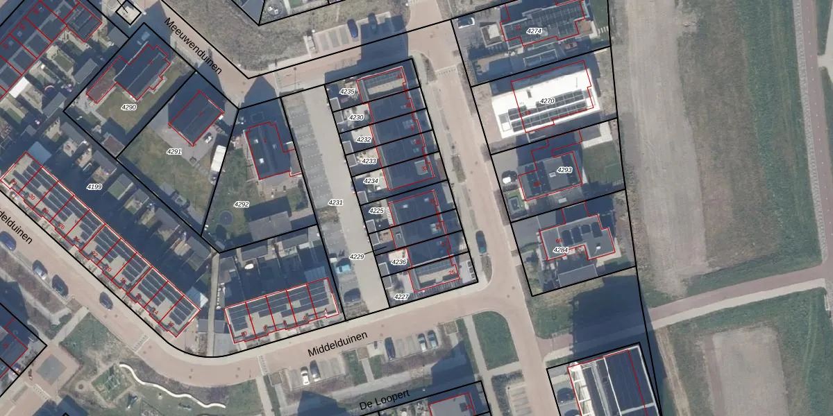 Gebruik de zoekbalk of klik op een perceel voor informatie over de adressen binnen dit perceel.
