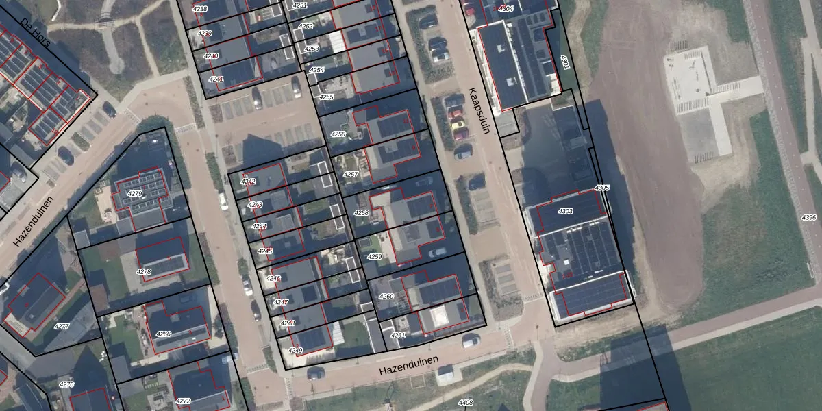 Het perceel waarop Kaapsduin 7 staat heeft een oppervlakte van 262 m². Dit is een middelgroot perceel. De perceeloppervlakte wordt geregistreerd door het Kadaster. Gedetailleerde informatie over de maten van dit perceel kunt u vinden in het rapport Kadastrale kaart met maatvoering van Kaapsduin 7.