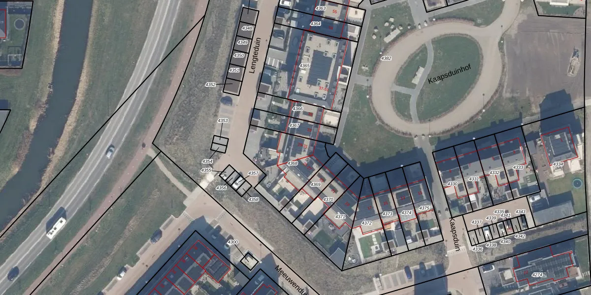Het perceel waarop Kaapsduinhof 31 staat heeft een oppervlakte van 491 m². Dit is een groot perceel. De perceeloppervlakte wordt geregistreerd door het Kadaster. Gedetailleerde informatie over de maten van dit perceel kunt u vinden in het rapport Kadastrale kaart met maatvoering van Kaapsduinhof 31.