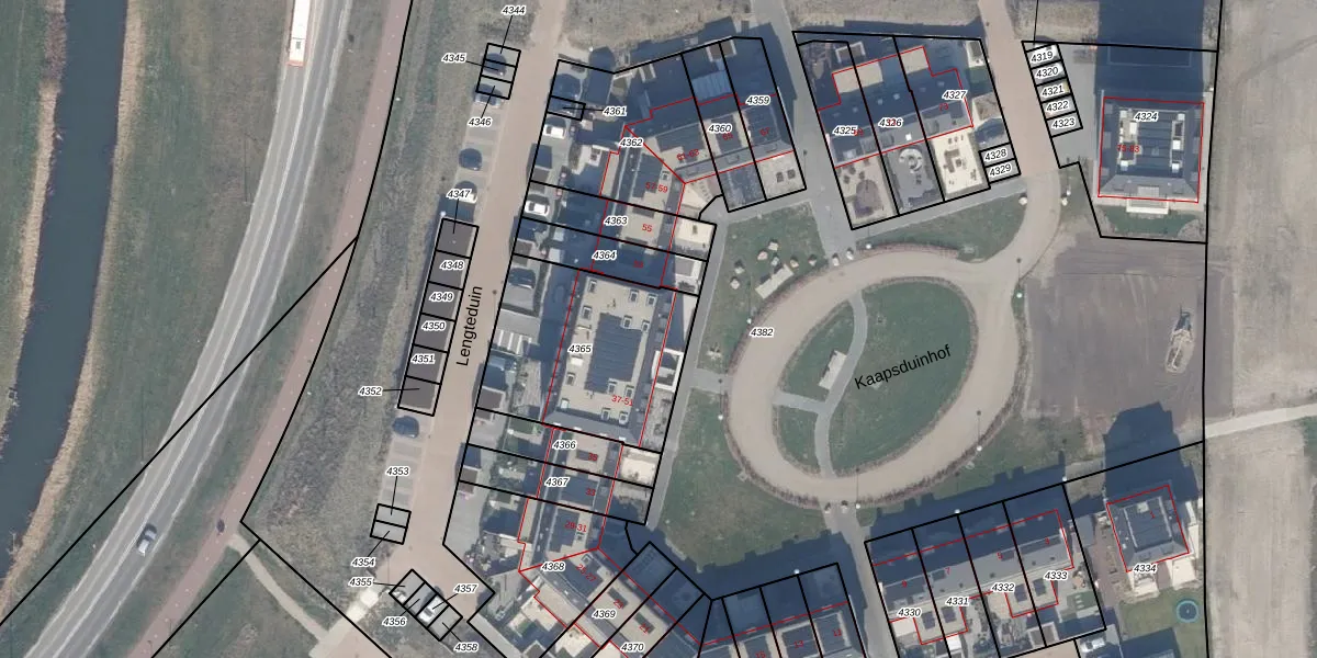 Het perceel waarop Kaapsduinhof 39 staat heeft een oppervlakte van 704 m². Dit is een groot perceel. De perceeloppervlakte wordt geregistreerd door het Kadaster. Gedetailleerde informatie over de maten van dit perceel kunt u vinden in het rapport Kadastrale kaart met maatvoering van Kaapsduinhof 39.