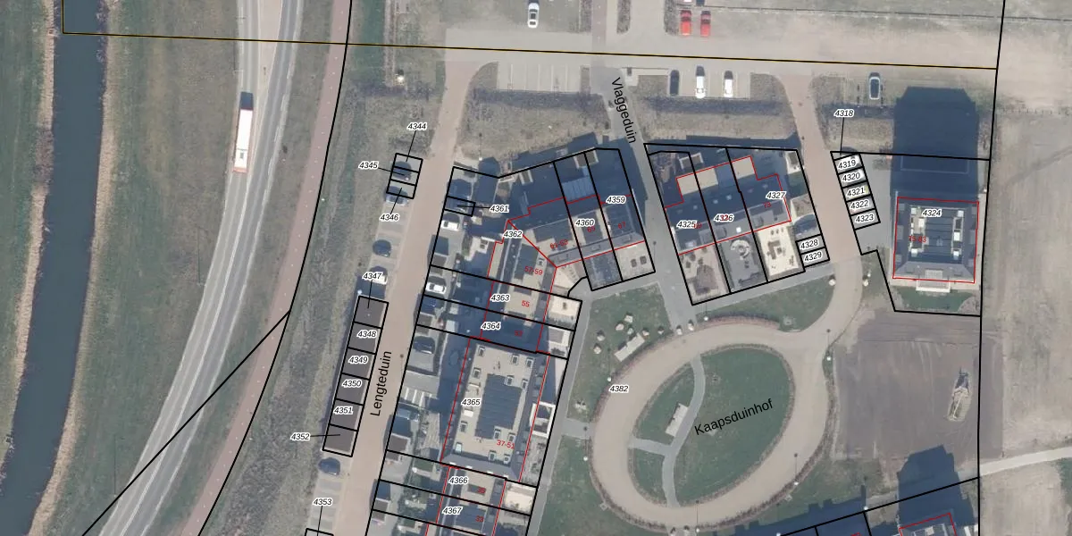 Het perceel waarop Kaapsduinhof 59 staat heeft een oppervlakte van 499 m². Dit is een groot perceel. De perceeloppervlakte wordt geregistreerd door het Kadaster. Gedetailleerde informatie over de maten van dit perceel kunt u vinden in het rapport Kadastrale kaart met maatvoering van Kaapsduinhof 59.