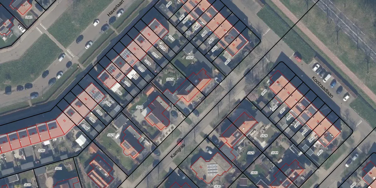 Gebruik de zoekbalk of klik op een perceel voor informatie over de adressen binnen dit perceel.