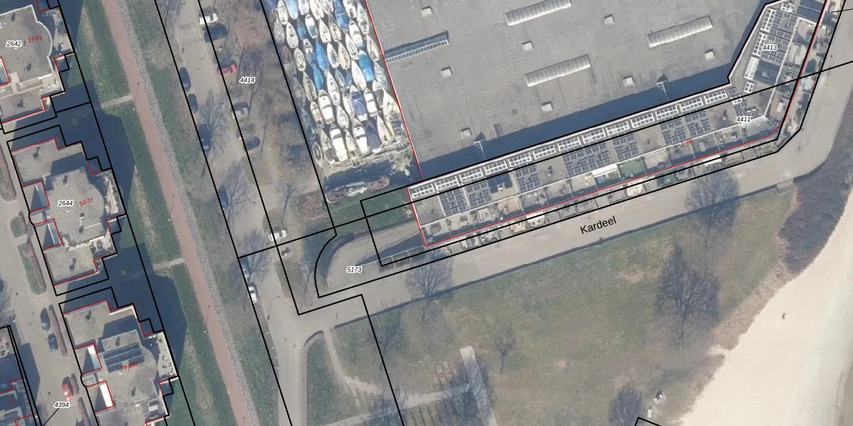 Het perceel waarop Kardeel 1 staat heeft een oppervlakte van 1222 m². Dit is een zeer groot perceel. De perceeloppervlakte wordt geregistreerd door het Kadaster. Gedetailleerde informatie over de maten van dit perceel kunt u vinden in het rapport Kadastrale kaart met maatvoering van Kardeel 1.