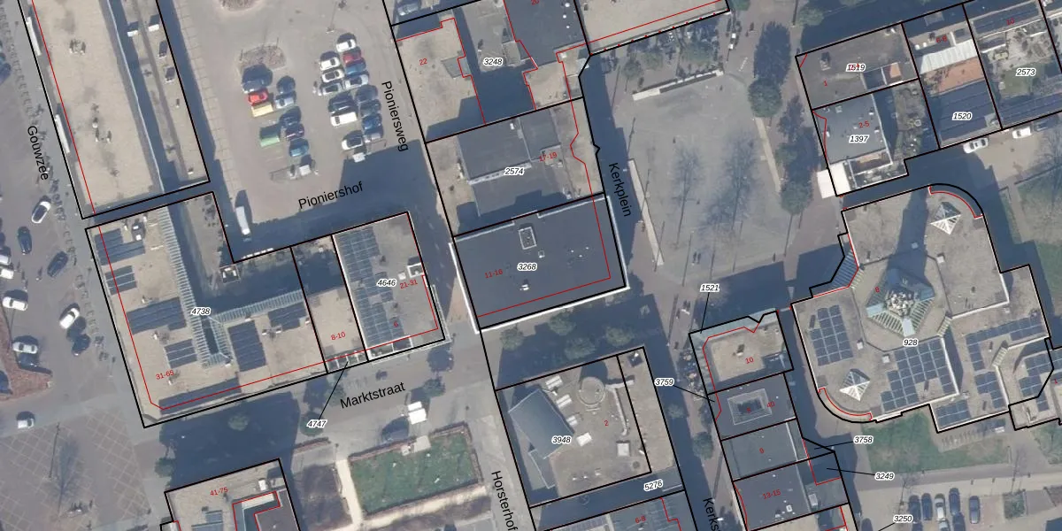 Het perceel waarop Kerkplein 15 staat heeft een oppervlakte van 527 m². Dit is een groot perceel. De perceeloppervlakte wordt geregistreerd door het Kadaster. Gedetailleerde informatie over de maten van dit perceel kunt u vinden in het rapport Kadastrale kaart met maatvoering van Kerkplein 15.