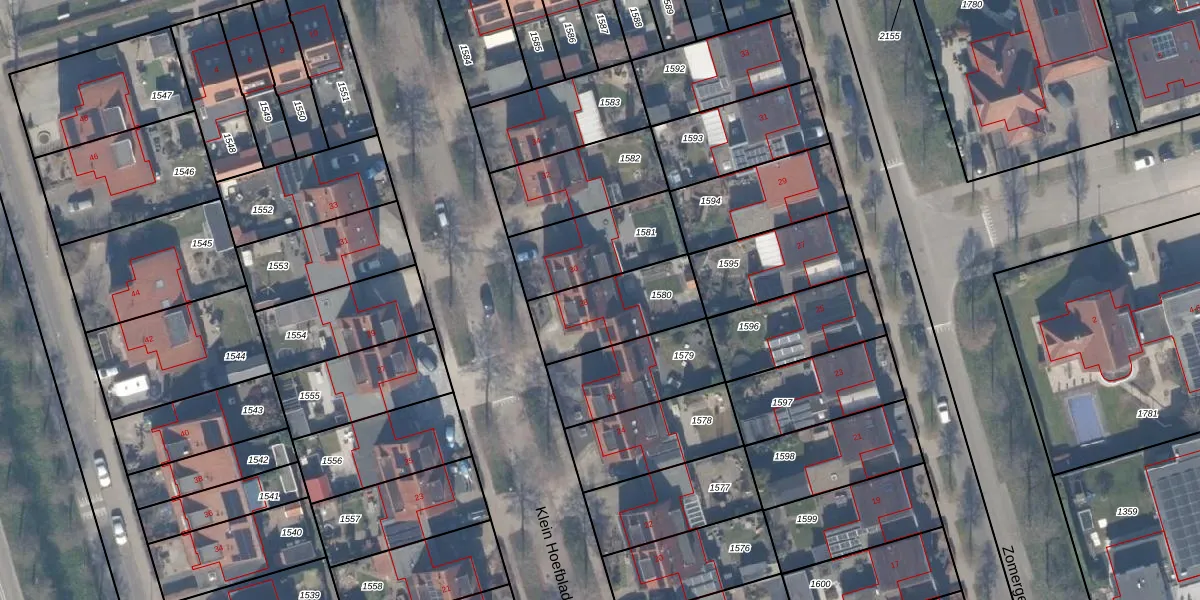 Gebruik de zoekbalk of klik op een perceel voor informatie over de adressen binnen dit perceel.