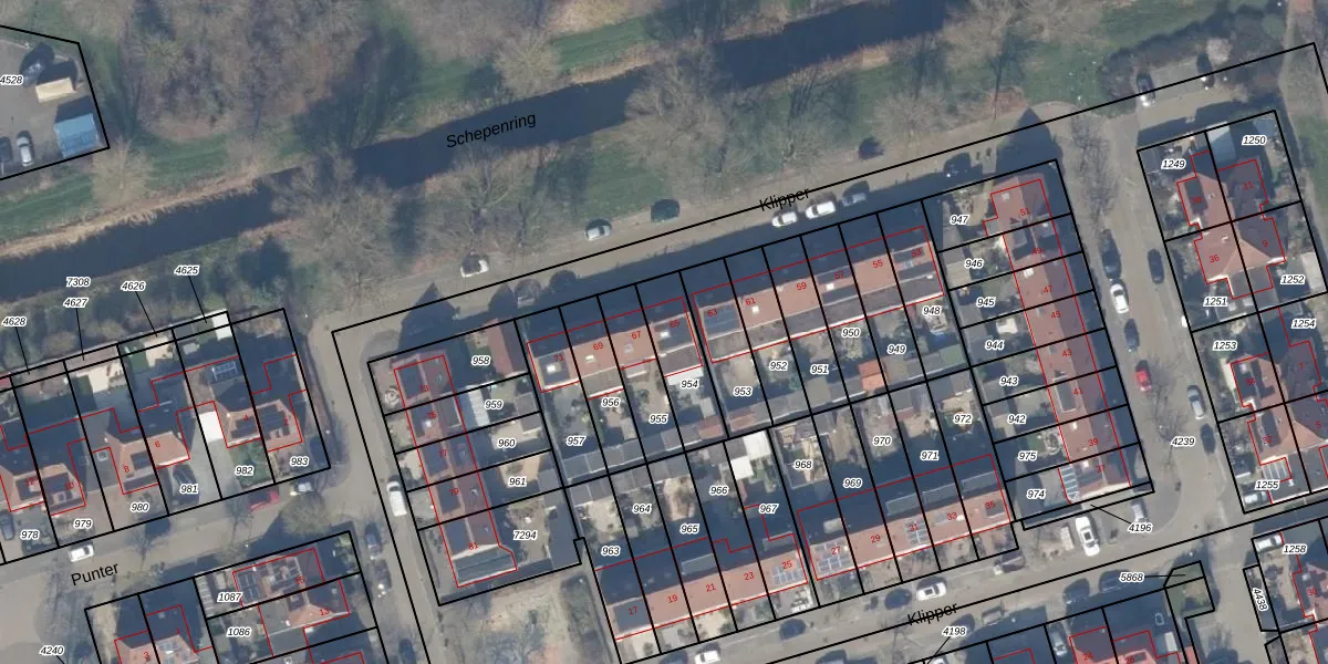 Het perceel waarop Klipper 65 staat heeft een oppervlakte van 184 m². Dit is een middelgroot perceel. De perceeloppervlakte wordt geregistreerd door het Kadaster. Gedetailleerde informatie over de maten van dit perceel kunt u vinden in het rapport Kadastrale kaart met maatvoering van Klipper 65.