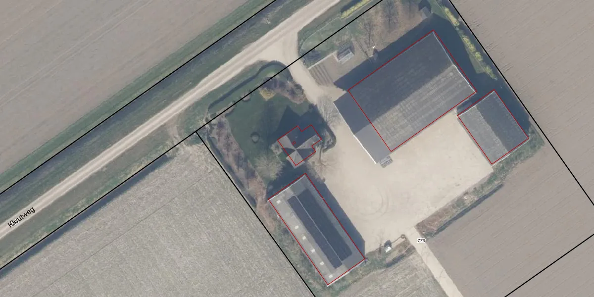 Het perceel waarop Kluutweg 10 staat heeft een oppervlakte van 1,0 ha. Dit is een zeer groot perceel. De perceeloppervlakte wordt geregistreerd door het Kadaster. Gedetailleerde informatie over de maten van dit perceel kunt u vinden in het rapport Kadastrale kaart met maatvoering van Kluutweg 10.