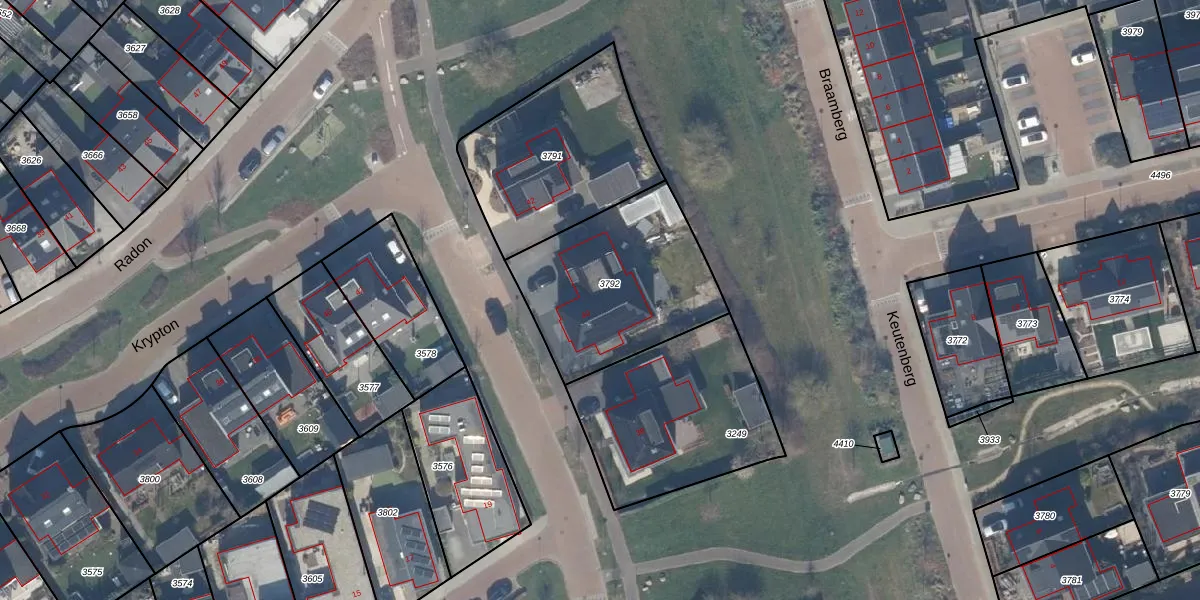 Het adres ligt op het perceel ZWD03-E-3792, dat zich in de kadastrale gemeente Zeewolde bevindt. De gemiddelde perceelgrootte in Zeewolde is 1,9 ha. Dit perceel is kleiner: de perceeloppervlakte bedraagt 716 m². Het grootste perceel in de kadastrale gemeente is 6,16 km². Het kleinste perceel heeft een oppervlakte van 0 m². Dit is het enige adres dat aanwezig is op het perceel. De laatste wijziging in het de Basisregistratie Kadaster (BRK) was op 07-09-2016.