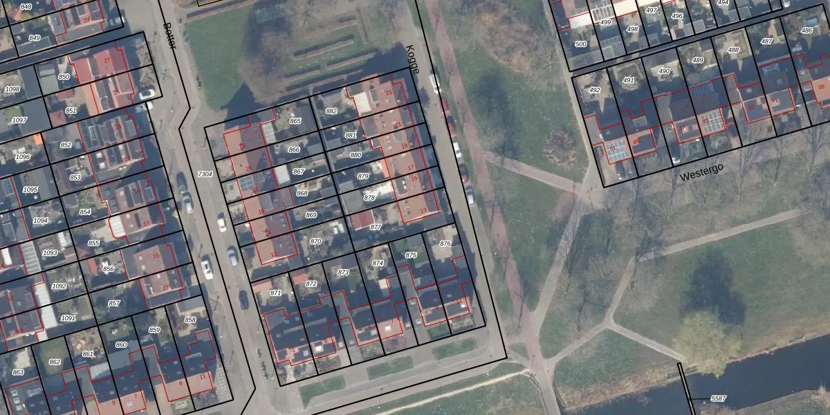 Gebruik de zoekbalk of klik op een perceel voor informatie over de adressen binnen dit perceel.