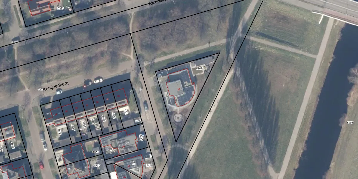 Het perceel waarop Konijnenberg 29 staat heeft een oppervlakte van 769 m². Dit is een groot perceel. De perceeloppervlakte wordt geregistreerd door het Kadaster. Gedetailleerde informatie over de maten van dit perceel kunt u vinden in het rapport Kadastrale kaart met maatvoering van Konijnenberg 29.
