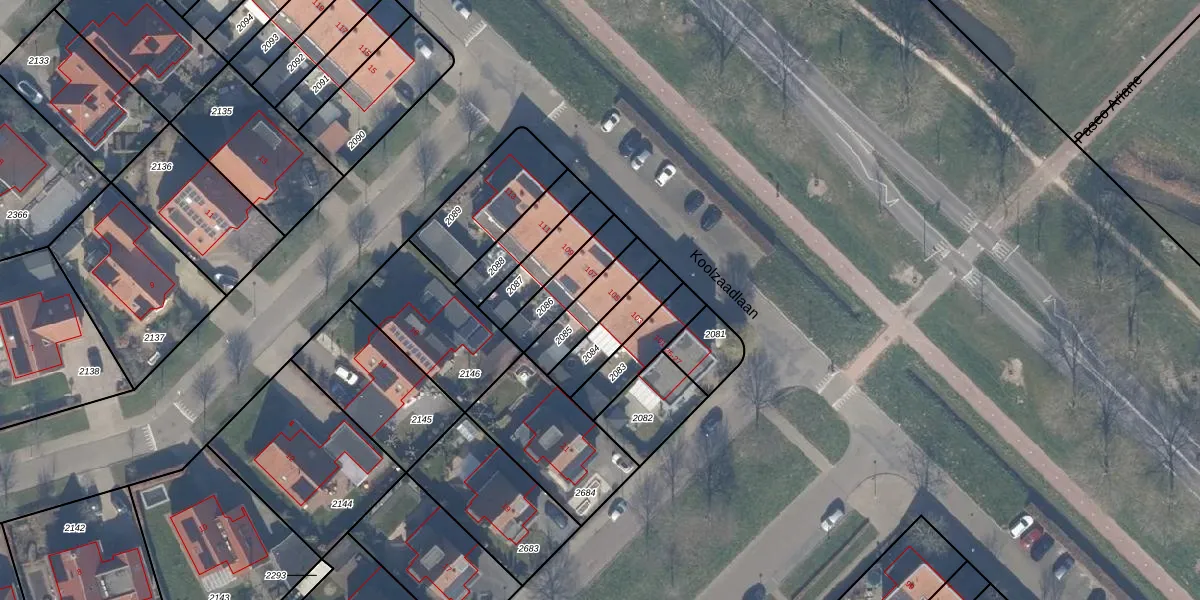Gebruik de zoekbalk of klik op een perceel voor informatie over de adressen binnen dit perceel.