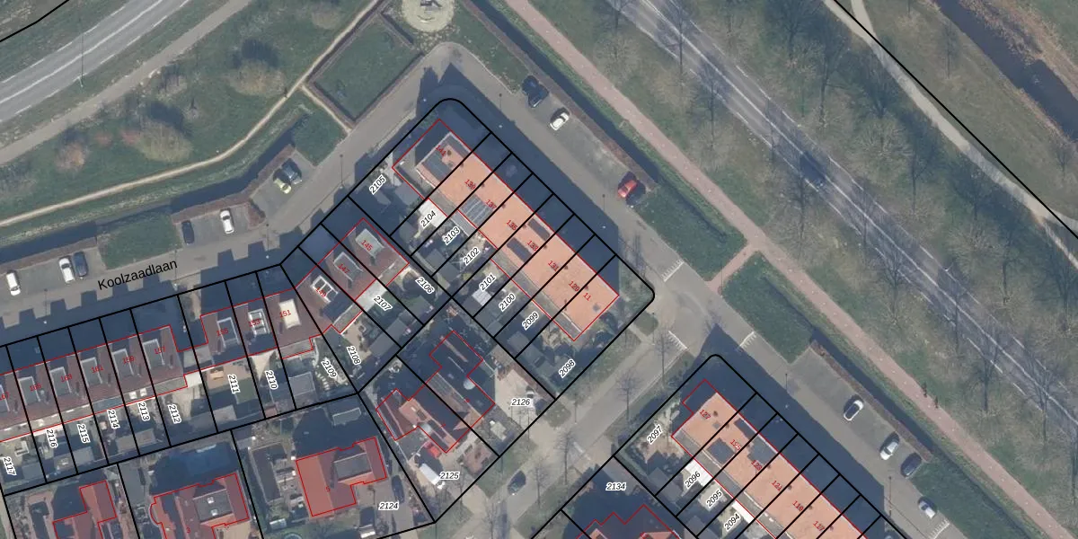 Gebruik de zoekbalk of klik op een perceel voor informatie over de adressen binnen dit perceel.