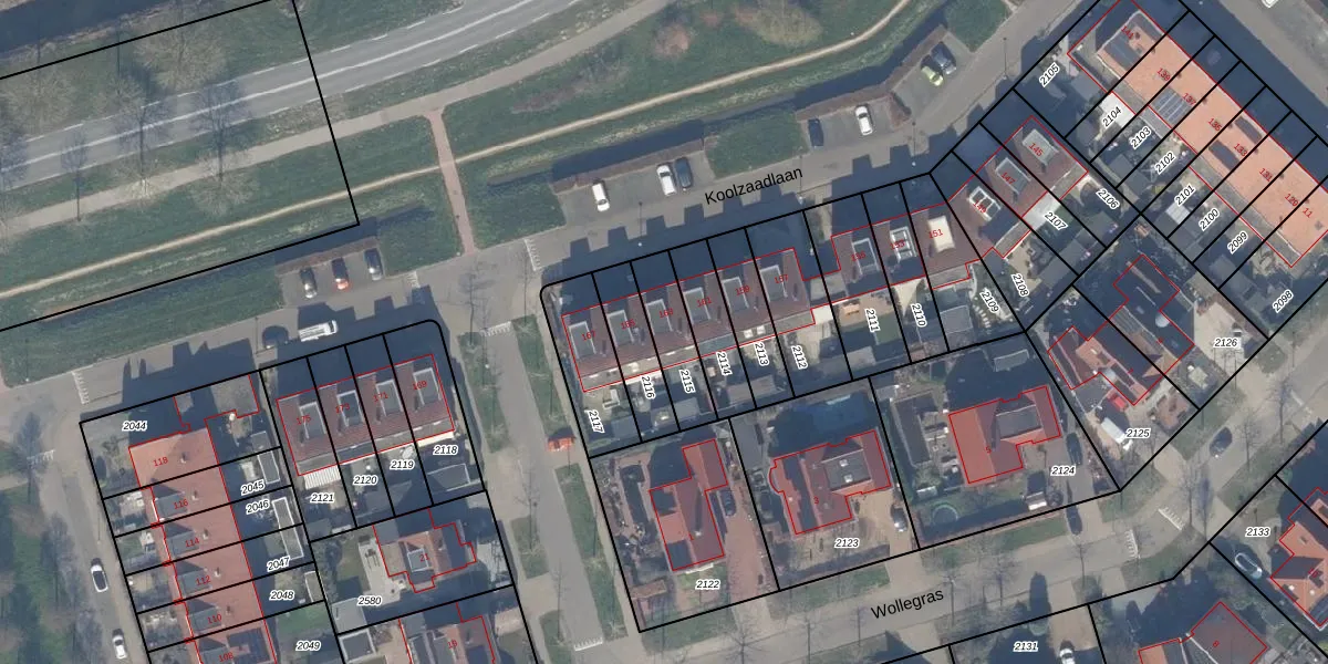 Gebruik de zoekbalk of klik op een perceel voor informatie over de adressen binnen dit perceel.