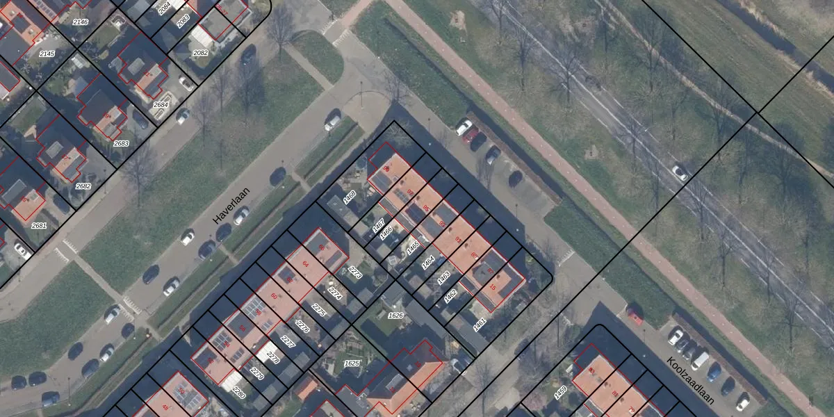 Gebruik de zoekbalk of klik op een perceel voor informatie over de adressen binnen dit perceel.