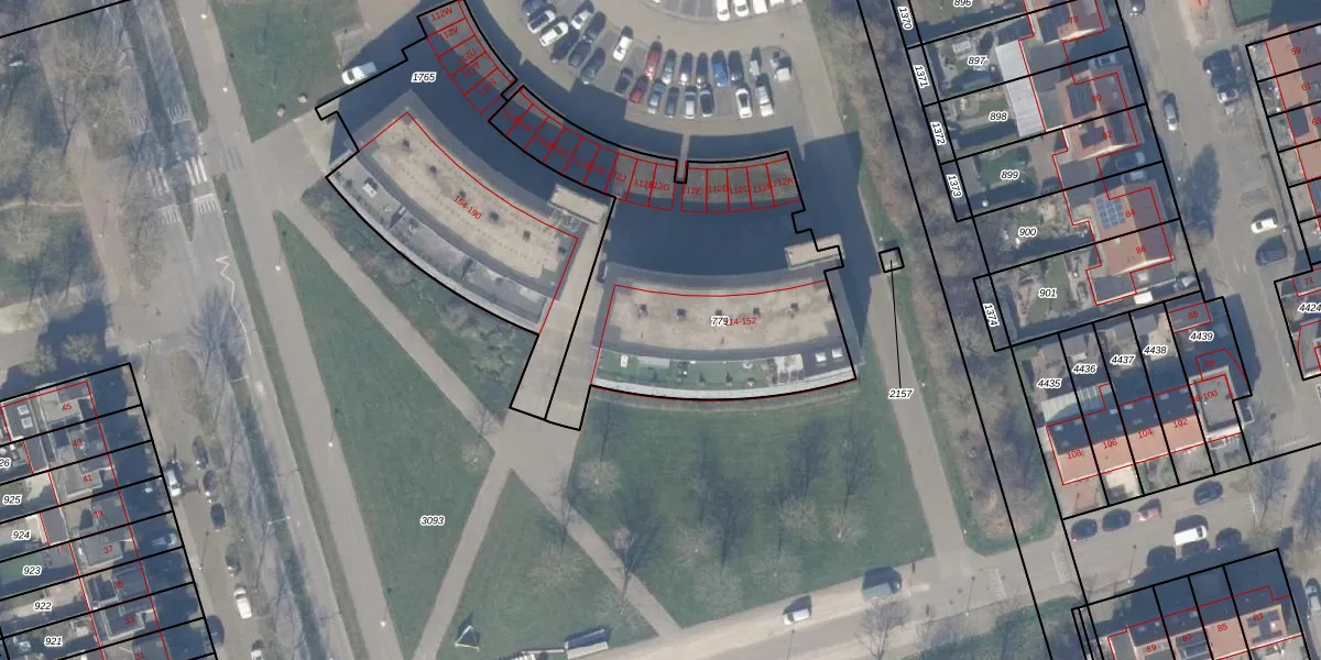 Het perceel waarop Koraal 140 staat heeft een oppervlakte van 1448 m². Dit is een zeer groot perceel. De perceeloppervlakte wordt geregistreerd door het Kadaster. Gedetailleerde informatie over de maten van dit perceel kunt u vinden in het rapport Kadastrale kaart met maatvoering van Koraal 140.