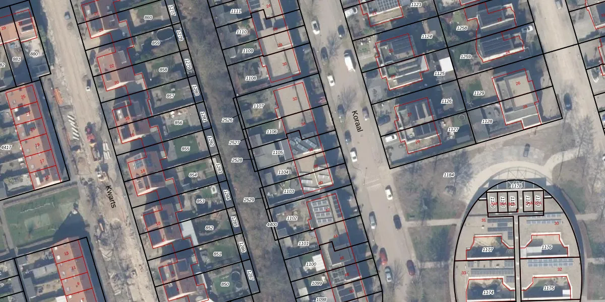 Het perceel waarop Koraal 36 staat heeft een oppervlakte van 200 m². Dit is een middelgroot perceel. De perceeloppervlakte wordt geregistreerd door het Kadaster. Gedetailleerde informatie over de maten van dit perceel kunt u vinden in het rapport Kadastrale kaart met maatvoering van Koraal 36.