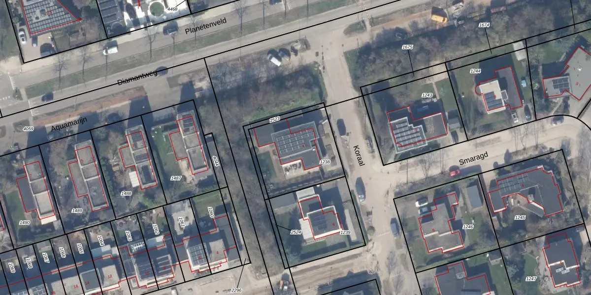 Gebruik de zoekbalk of klik op een perceel voor informatie over de adressen binnen dit perceel.