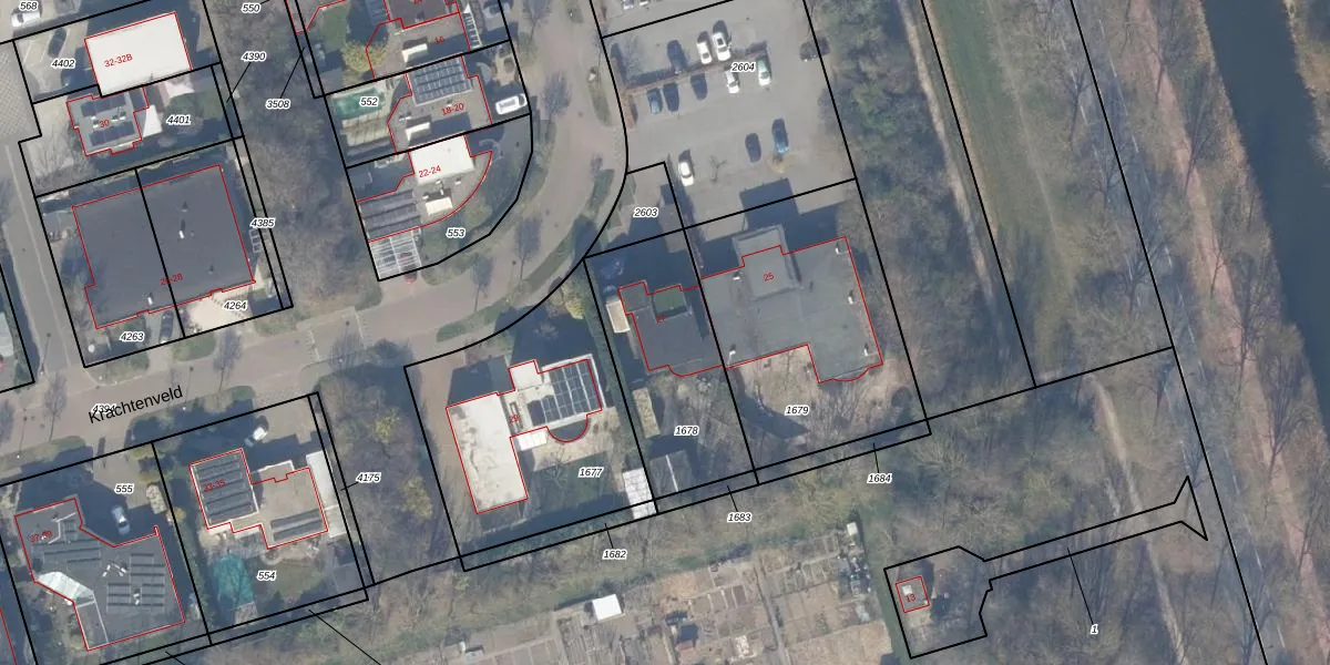 Het perceel waarop Krachtenveld 27 staat heeft een oppervlakte van 596 m². Dit is een groot perceel. De perceeloppervlakte wordt geregistreerd door het Kadaster. Gedetailleerde informatie over de maten van dit perceel kunt u vinden in het rapport Kadastrale kaart met maatvoering van Krachtenveld 27.