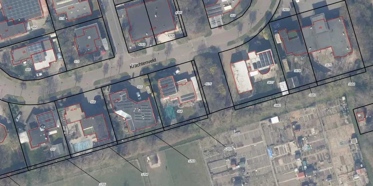 Krachtenveld 35 is gelegen op kadastraal perceel ZWD03E554. Deze kadastrale aanduiding is uniek en wordt gebruikt door het Kadaster om eigendomsrechten en andere zakelijke rechten vast te leggen. Het perceel maakt onderdeel uit van de kadastrale gemeente Zeewolde.