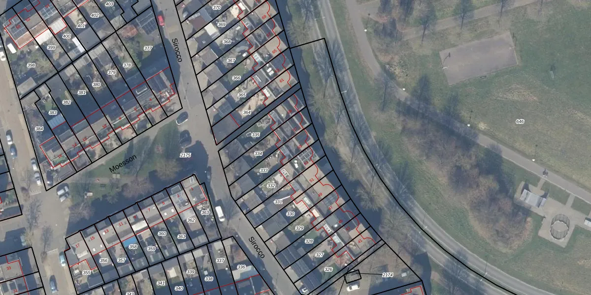 Gebruik de zoekbalk of klik op een perceel voor informatie over de adressen binnen dit perceel.