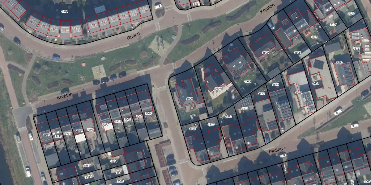 Het perceel waarop Krypton 28 staat heeft een oppervlakte van 440 m². Dit is een groot perceel. De perceeloppervlakte wordt geregistreerd door het Kadaster. Gedetailleerde informatie over de maten van dit perceel kunt u vinden in het rapport Kadastrale kaart met maatvoering van Krypton 28.
