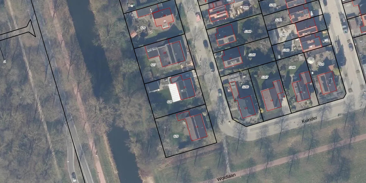 Het perceel waarop Kuinder 21 staat heeft een oppervlakte van 580 m². Dit is een groot perceel. De perceeloppervlakte wordt geregistreerd door het Kadaster. Gedetailleerde informatie over de maten van dit perceel kunt u vinden in het rapport Kadastrale kaart met maatvoering van Kuinder 21.