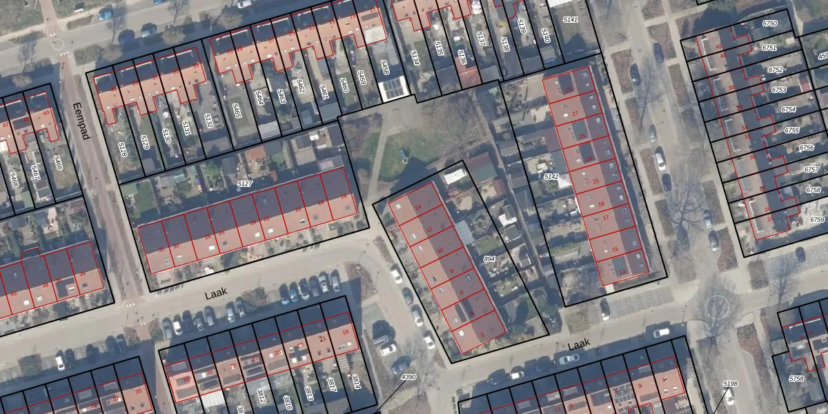 Het perceel waarop Laak 14 staat heeft een oppervlakte van 1091 m². Dit is een zeer groot perceel. De perceeloppervlakte wordt geregistreerd door het Kadaster. Gedetailleerde informatie over de maten van dit perceel kunt u vinden in het rapport Kadastrale kaart met maatvoering van Laak 14.