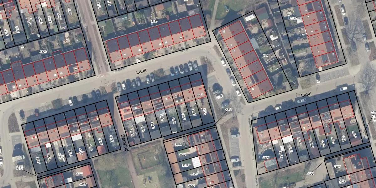 Het perceel waarop Laak 21 staat heeft een oppervlakte van 156 m². Dit is een middelgroot perceel. De perceeloppervlakte wordt geregistreerd door het Kadaster. Gedetailleerde informatie over de maten van dit perceel kunt u vinden in het rapport Kadastrale kaart met maatvoering van Laak 21.