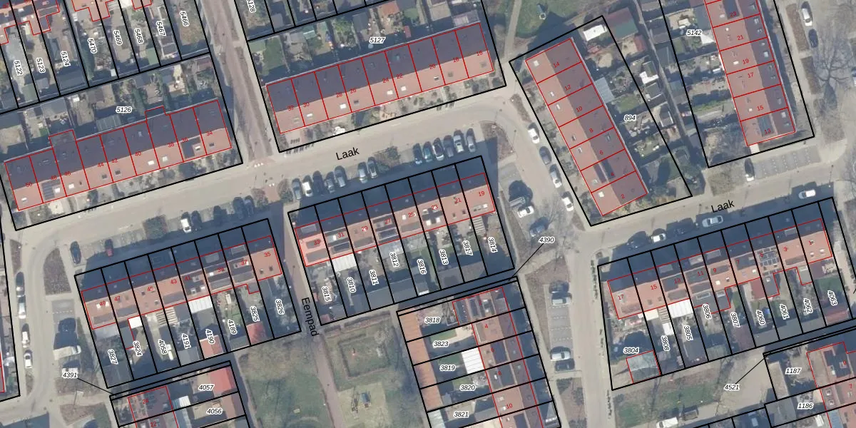 Het perceel waarop Laak 23 staat heeft een oppervlakte van 156 m². Dit is een middelgroot perceel. De perceeloppervlakte wordt geregistreerd door het Kadaster. Gedetailleerde informatie over de maten van dit perceel kunt u vinden in het rapport Kadastrale kaart met maatvoering van Laak 23.