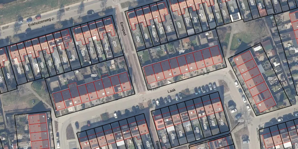 Het perceel waarop Laak 32 staat heeft een oppervlakte van 1494 m². Dit is een zeer groot perceel. De perceeloppervlakte wordt geregistreerd door het Kadaster. Gedetailleerde informatie over de maten van dit perceel kunt u vinden in het rapport Kadastrale kaart met maatvoering van Laak 32.