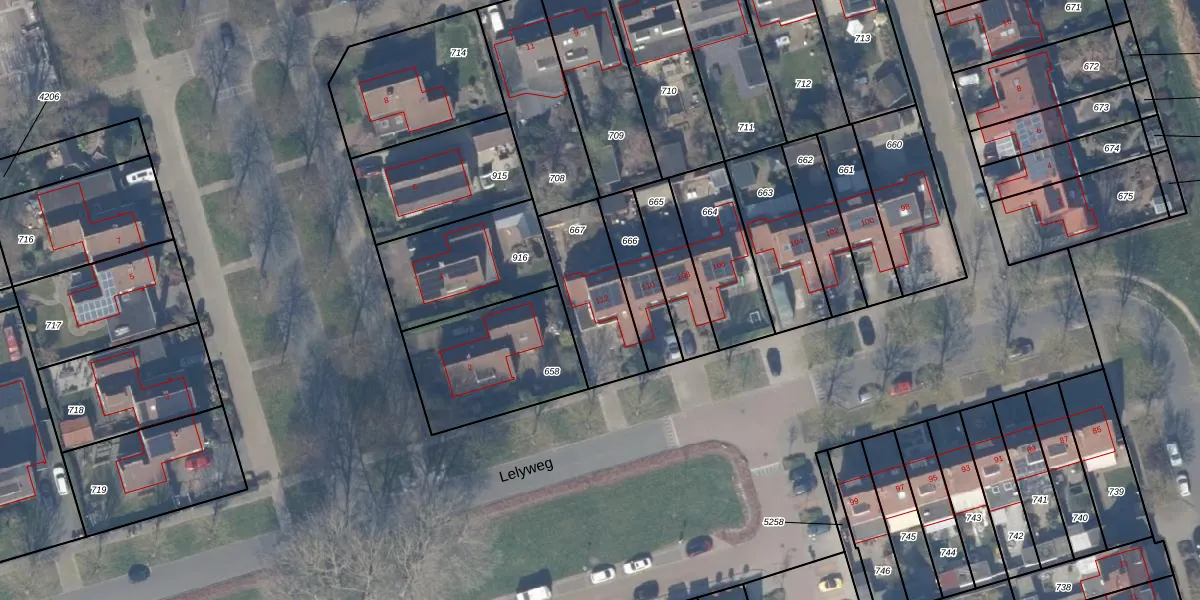 Het perceel waarop Lelyweg 112 staat heeft een oppervlakte van 312 m². Dit is een groot perceel. De perceeloppervlakte wordt geregistreerd door het Kadaster. Gedetailleerde informatie over de maten van dit perceel kunt u vinden in het rapport Kadastrale kaart met maatvoering van Lelyweg 112.