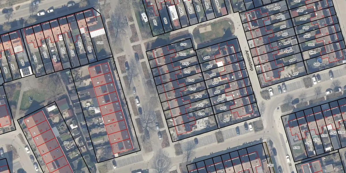 Gebruik de zoekbalk of klik op een perceel voor informatie over de adressen binnen dit perceel.