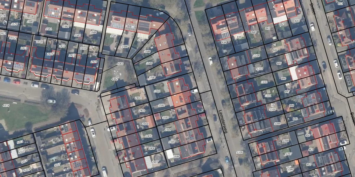 Gebruik de zoekbalk of klik op een perceel voor informatie over de adressen binnen dit perceel.