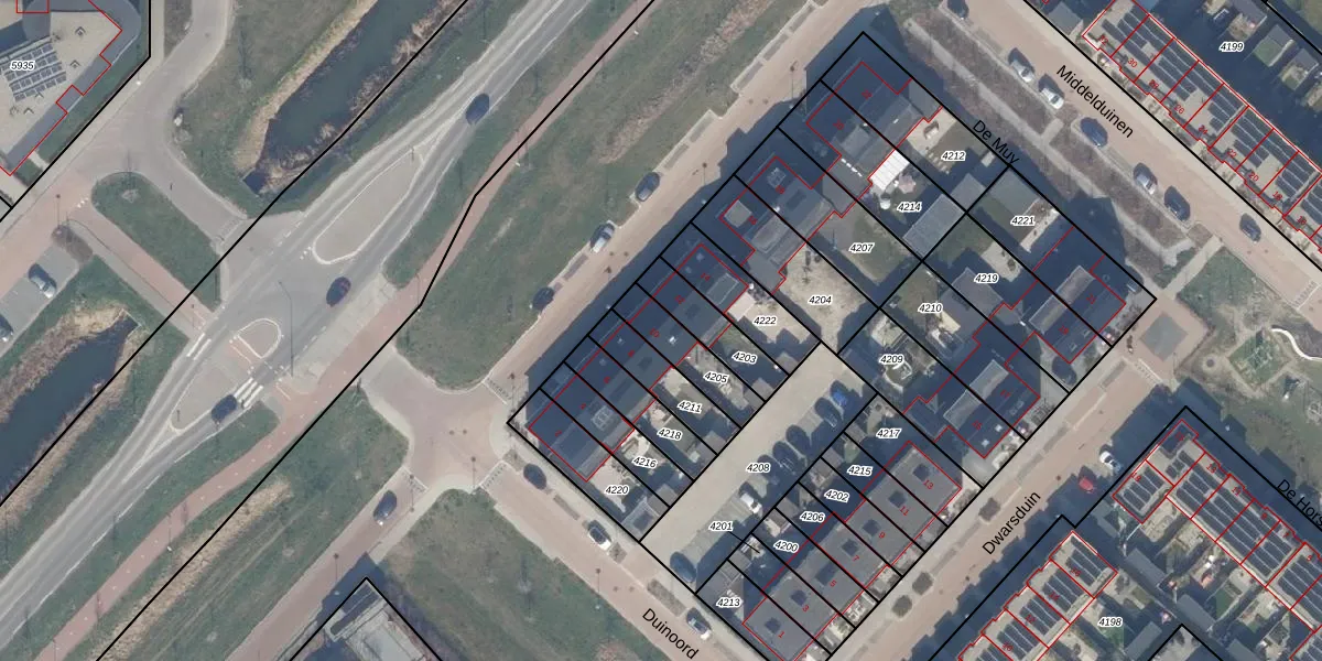 Het adres ligt op het perceel ZWD03-E-4205, dat zich in de kadastrale gemeente Zeewolde bevindt. De gemiddelde perceelgrootte in Zeewolde is 1,9 ha. Dit perceel is kleiner: de perceeloppervlakte bedraagt 145 m². Het grootste perceel in de kadastrale gemeente is 6,16 km². Het kleinste perceel heeft een oppervlakte van 0 m². Er zijn geen andere adressen aanwezig op het perceel. De huidige grenzen van het perceel zijn digitaal in de Basisregistratie Kadaster (BRK) geregistreerd op 28-03-2023.