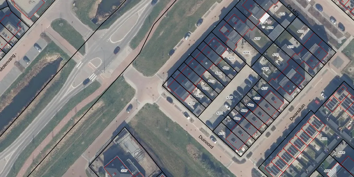 Het adres ligt op het perceel ZWD03-E-4220, dat zich in de kadastrale gemeente Zeewolde bevindt. De gemiddelde perceelgrootte in Zeewolde is 1,9 ha. Dit perceel is kleiner: de perceeloppervlakte bedraagt 191 m². Het grootste perceel in de kadastrale gemeente is 6,16 km². Het kleinste perceel heeft een oppervlakte van 0 m². Dit is het enige adres dat aanwezig is op het perceel. De huidige grenzen van het perceel zijn digitaal in de Basisregistratie Kadaster (BRK) geregistreerd op 28-03-2023.