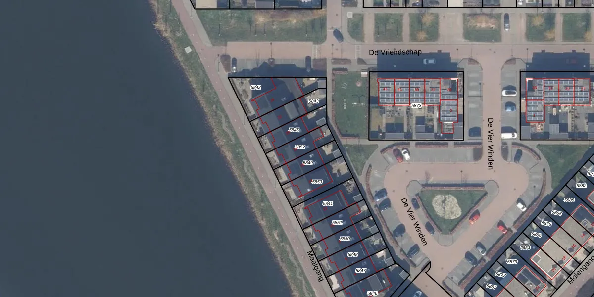 Gebruik de zoekbalk of klik op een perceel voor informatie over de adressen binnen dit perceel.