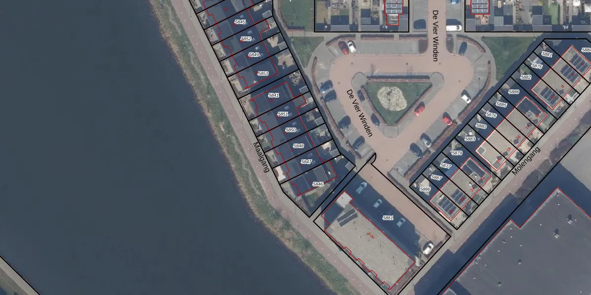Gebruik de zoekbalk of klik op een perceel voor informatie over de adressen binnen dit perceel.
