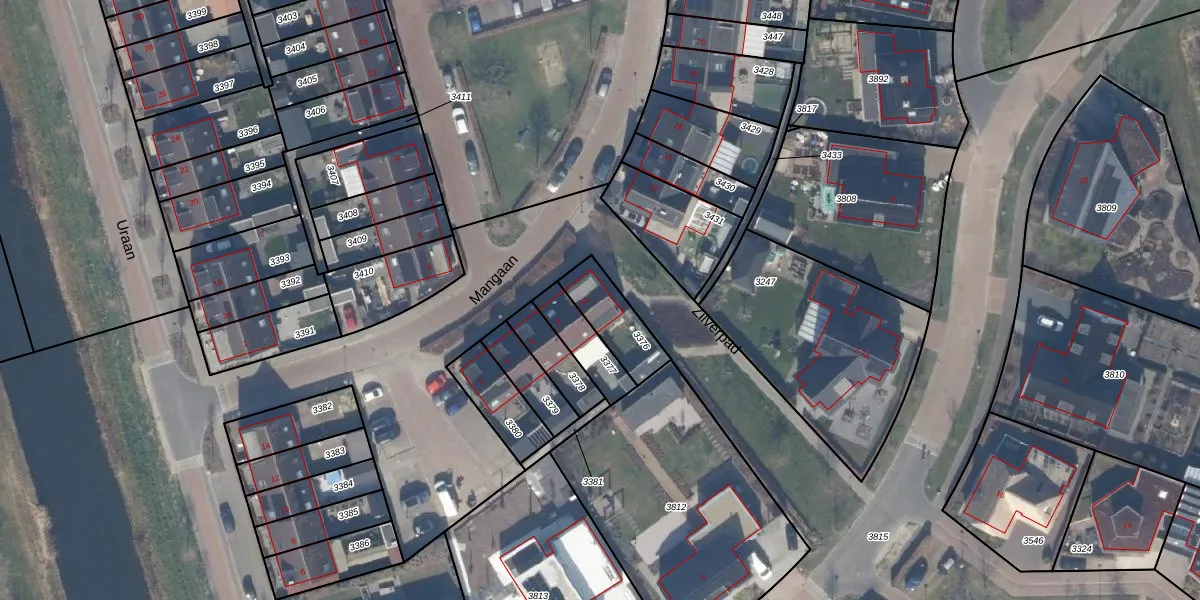 Het perceel waarop Mangaan 10 staat heeft een oppervlakte van 158 m². Dit is een middelgroot perceel. De perceeloppervlakte wordt geregistreerd door het Kadaster. Gedetailleerde informatie over de maten van dit perceel kunt u vinden in het rapport Kadastrale kaart met maatvoering van Mangaan 10.