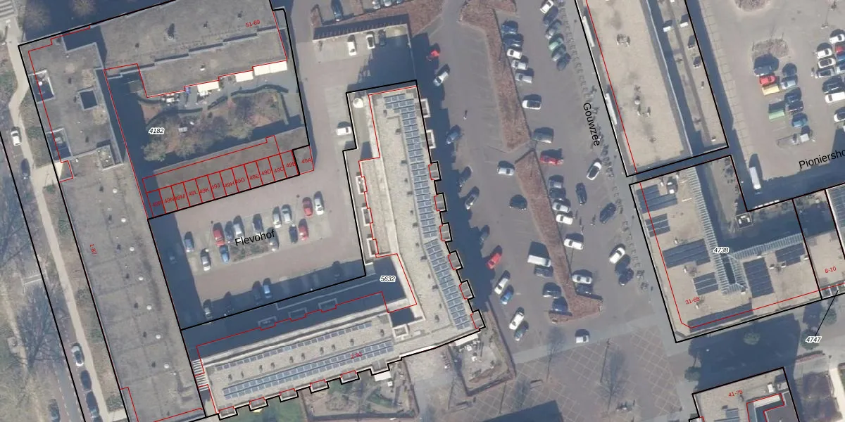 Het adres is gelegen op perceel 5632 in de sectie A en de kadastrale gemeente Zeewolde. De kadastrale aanduiding is aldus ZWD03-A-5632. De gemiddelde perceelgrootte in Zeewolde is 1,9 ha. Dit perceel is kleiner: de perceeloppervlakte bedraagt 2316 m². Het grootste perceel in de kadastrale gemeente is 6,16 km². Het kleinste perceel heeft een oppervlakte van 0 m². Op het perceel zijn 45 adressen aanwezig. De huidige grenzen van het perceel zijn digitaal in de Basisregistratie Kadaster (BRK) geregistreerd op 24-05-2017.