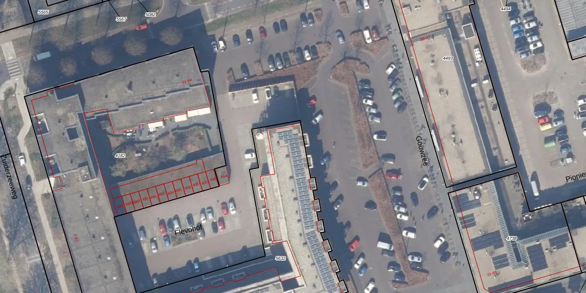 Het adres is gelegen op perceel 5632 in de sectie A en de kadastrale gemeente Zeewolde. De kadastrale aanduiding is aldus ZWD03-A-5632. De gemiddelde perceelgrootte in Zeewolde is 1,9 ha. Dit perceel is kleiner: de perceeloppervlakte bedraagt 2316 m². Het grootste perceel in de kadastrale gemeente is 6,16 km². Het kleinste perceel heeft een oppervlakte van 0 m². Op het perceel zijn 45 adressen aanwezig. De huidige grenzen van het perceel zijn digitaal in de Basisregistratie Kadaster (BRK) geregistreerd op 24-05-2017.