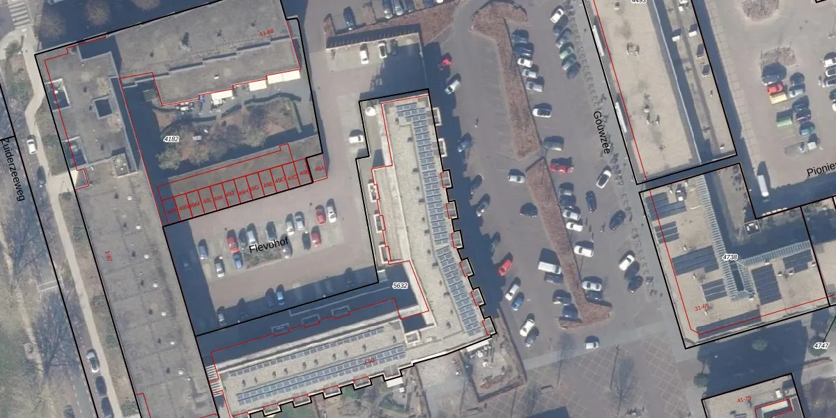 Het adres is gelegen op perceel 5632 in de sectie A en de kadastrale gemeente Zeewolde. De kadastrale aanduiding is aldus ZWD03-A-5632. De gemiddelde perceelgrootte in Zeewolde is 1,9 ha. Dit perceel is kleiner: de perceeloppervlakte bedraagt 2316 m². Het kleinste perceel in de kadastrale gemeente is 0 m² groot. De grootste perceeloppervlakte is 6,16 km². Er zijn 45 adressen aanwezig op het perceel. De huidige grenzen van het perceel zijn digitaal in de Basisregistratie Kadaster (BRK) geregistreerd op 24-05-2017.