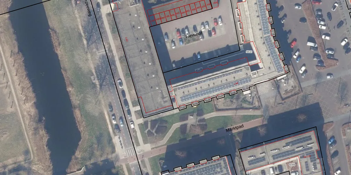 Het adres is gelegen op perceel 5632 in de sectie A en de kadastrale gemeente Zeewolde. De kadastrale aanduiding is aldus ZWD03-A-5632. De gemiddelde perceelgrootte in Zeewolde is 1,9 ha. Dit perceel is kleiner: de perceeloppervlakte bedraagt 2316 m². Het kleinste perceel in de kadastrale gemeente is 0 m² groot. De grootste perceeloppervlakte is 6,16 km². Op het perceel liggen in totaal 45 adressen. De huidige grenzen van het perceel zijn digitaal in de Basisregistratie Kadaster (BRK) geregistreerd op 24-05-2017.